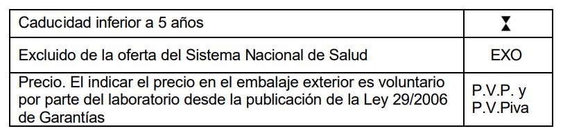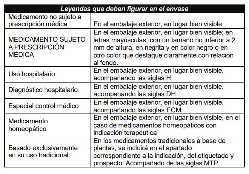 Aparte de los símbolos y las siglas, los envases farmacéuticos incluyen leyendas con diferentes indicaciones de uso obligatorio: