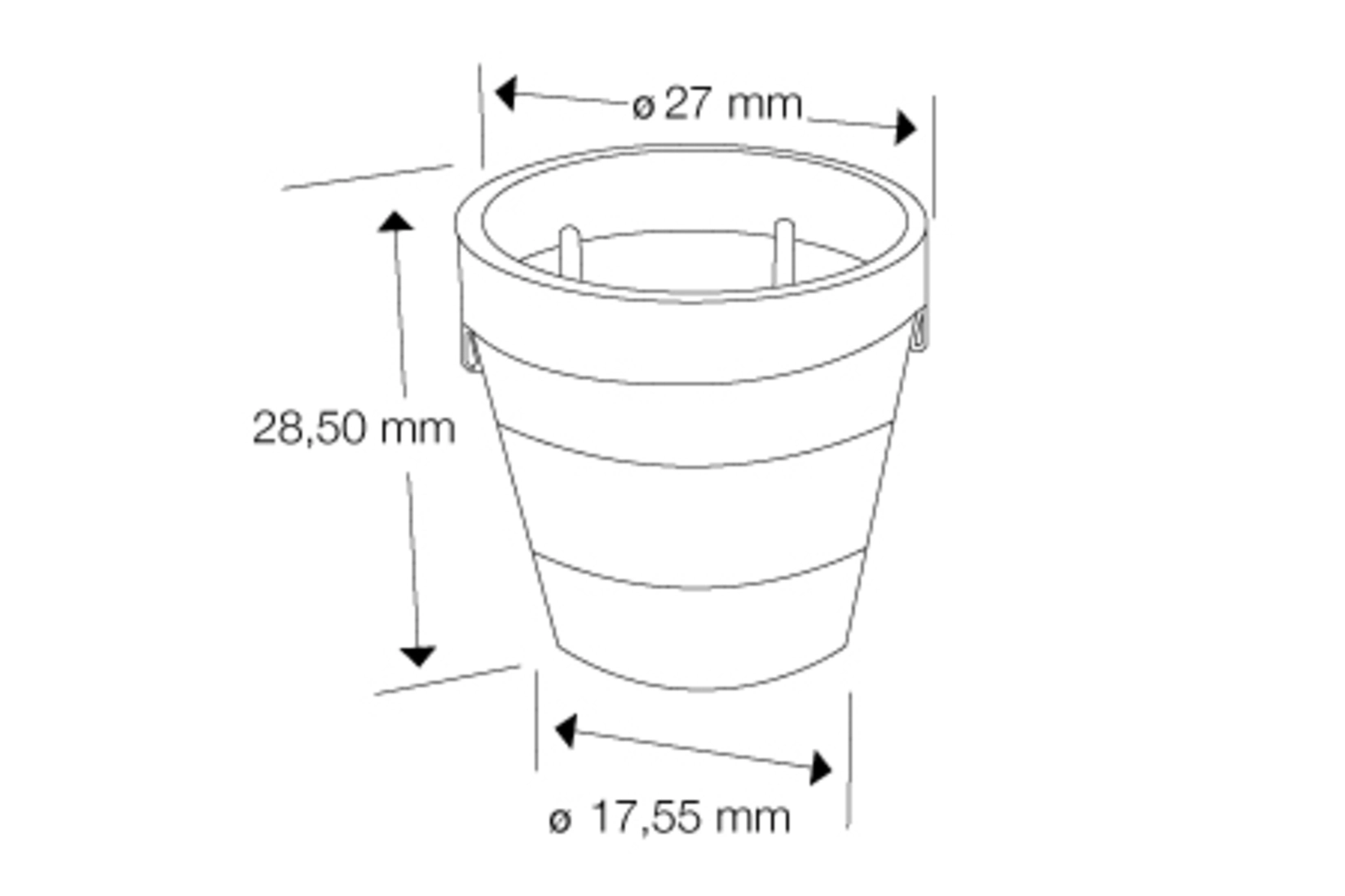 Dosierbecher aus Kunststoff mit einem Fassungsvermögen von 10 ml, entwickelt für die präzise Dosierung von Sirupen und oralen Lösungen. Er verfügt über eine Skalierung von 1,5–4,5–7,5 ml, die eine Anpassung der Dosierung an die jeweiligen Produktanforderungen ermöglicht. Das kompakte Design mit einem Durchmesser von 27 mm und einer Höhe von 28,5 mm eignet sich für verschiedene Verpackungsformate.