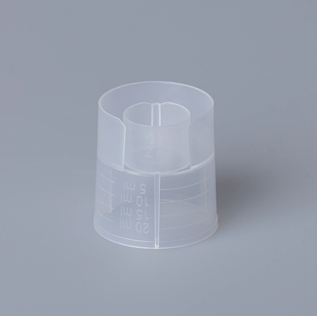 Graduated 20 ml / 4 ml dosing cup designed for precise and simple oral administration. Suitable for pharmaceutical, healthcare and nutraceutical products, it provides clear control of the dispensed volume in each use.